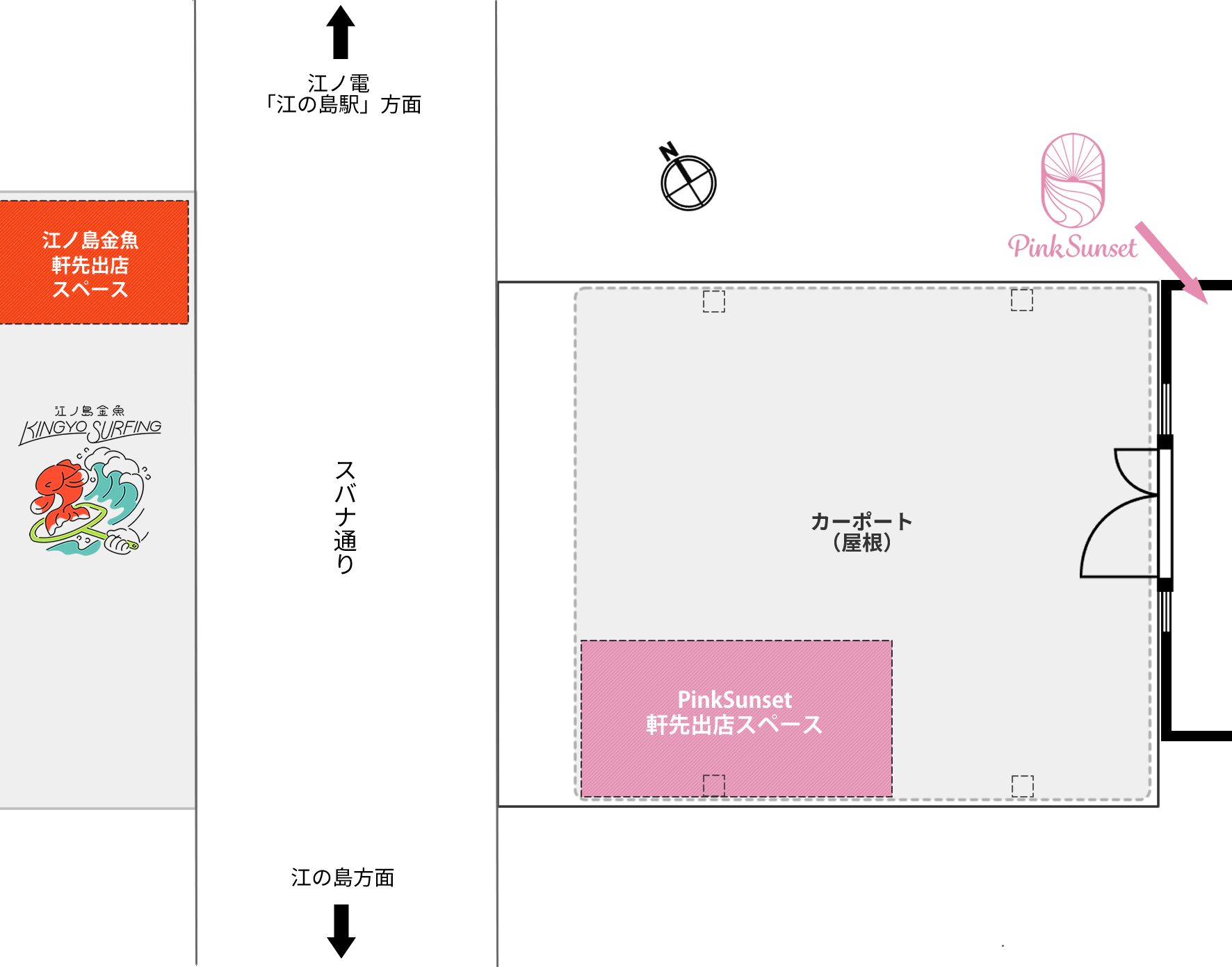 | ①江ノ島金魚 タイアップスペース | 軒先スペース |
